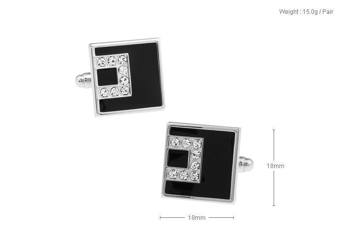 Black Crystal Silver Metal Cufflinks For Men's